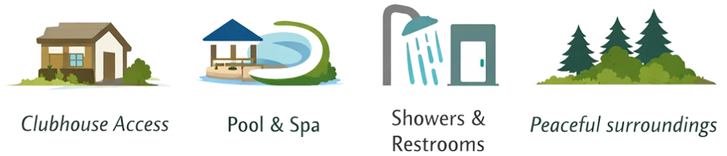 - Full hook-up sites: electricity, water, sewer & Wi-Fi