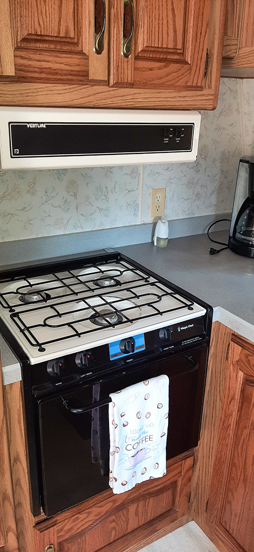Stove, refrigerator, and dishwashing area located inside the clubhouse.